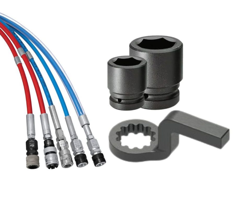 Komplettes Zubehör wie Hochdruck-Hydraulikschläuche, Kupplungen, Verteiler, Gewindekappen usw.